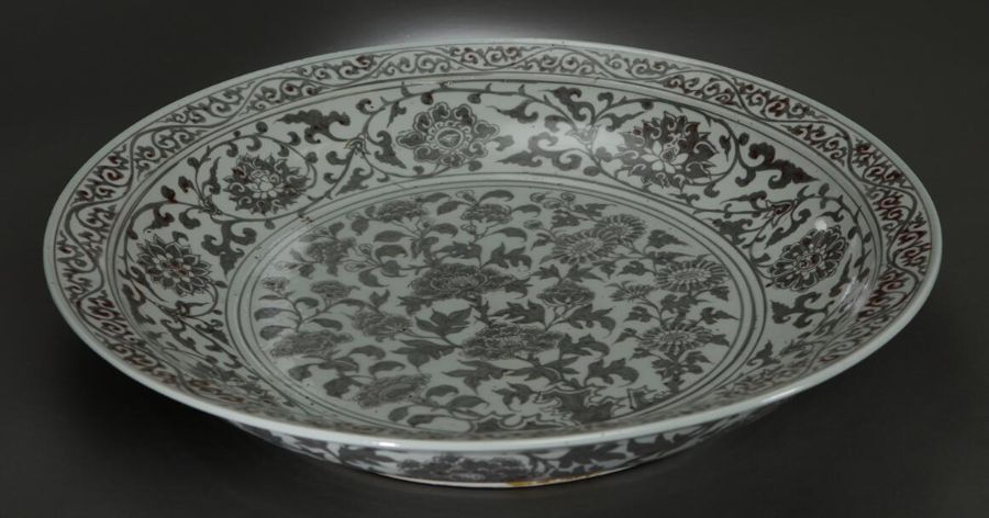 元釉里红勾莲纹大盘